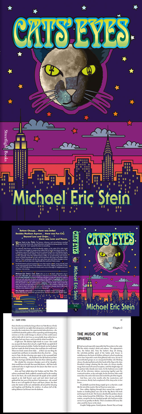 Cats Eyes - Book Design Project Art Direction, Illustration, Graphic and Book Design for a self-published novel sete in the 1960s protest-era New York City. Project included a wrap-around cover illustration in a Peter Max inspired 60s style. Complete book design, inclusding Steetlight Books imprint logo, and display typography. Groovy, man. Adobe Illustrator, Photoshop, InDesign, Acrobat, MS Word, Amazon CreateSpace. |