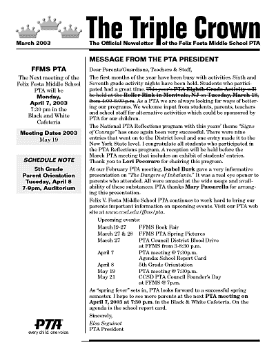 The Triple Crown / Felix Festa Middle School PTA Newsletter